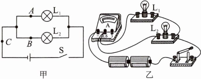 (1)图甲是他们设计的电路图,图乙是他们测量电流时连接的实验电路,此时电流表测量的是______(填“A”“B”或“C”)处的电流。