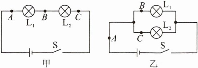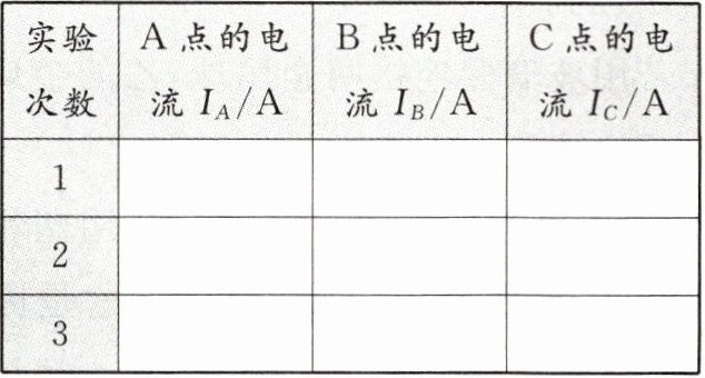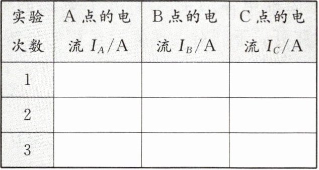 [实验过程]用电流表分别测量甲、乙两图中A、B、C三处电流,记录数据;换不同规格的灯泡进行多次测量;最后观察、分析数据,得出结论。