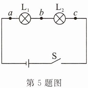 5. 如图所示,在“探究串联电路中电压的规律”时,小雨同学用电压表测出ab、bc、ac两端的电压分别为$U_{ab}= 3V,$$U_{bc}= 3V,$$U_{ac}= 6V,$在表中记录数据后,下一步应该做的是(