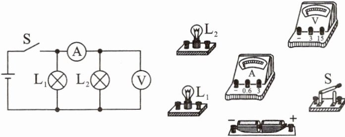 5. 根据电路图,用笔画线代替导线,将图中所示元件连接起来。