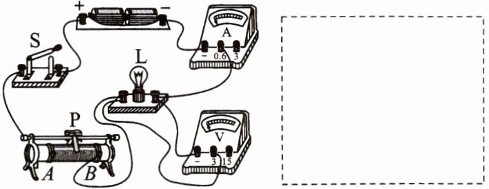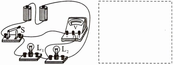 3. 根据如图所示的实物连接图,在虚线框中画出电路图。