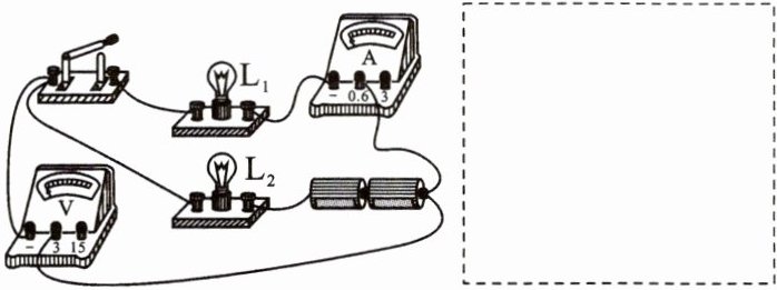 1. 请根据实物图,在虚线框中画出对应的电路图。