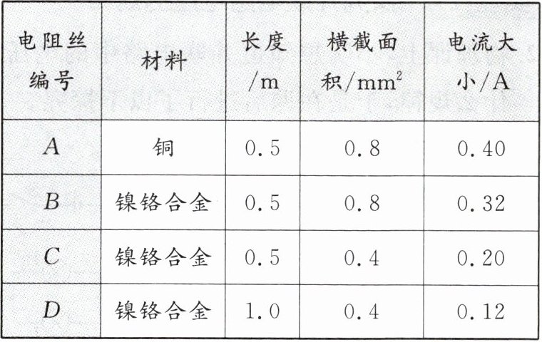 实验室提供了4根电阻丝,其规格、材料如下表所示。
