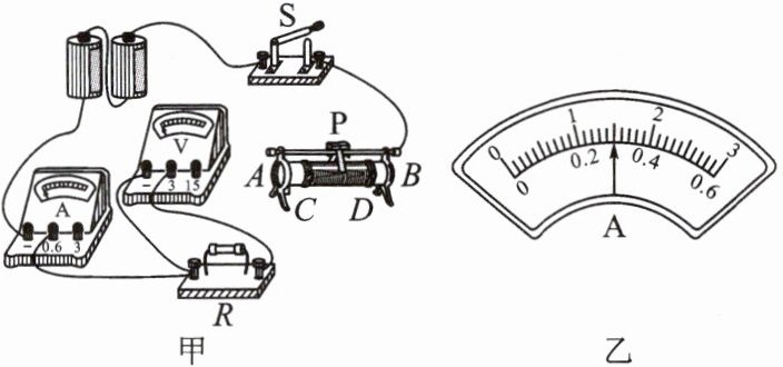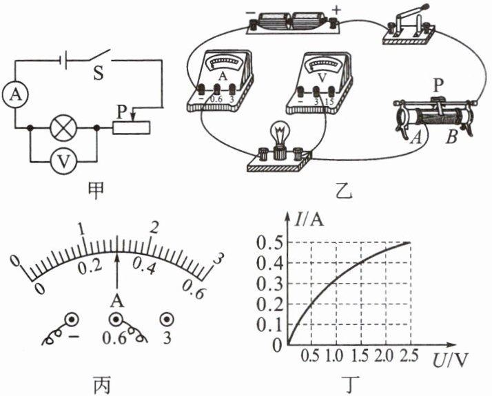 (3)闭合开关后,移动滑动变阻器的滑片 P 到不同位置,并记下不同位置时电压表和电流表的示数,某次电流表的指针位置如图丙所示,示数为______A。