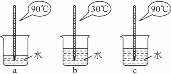 3. 如图所示,图 a 杯中水量较少,图 b 与图 c 杯中的水量相同,通过比较可知,图