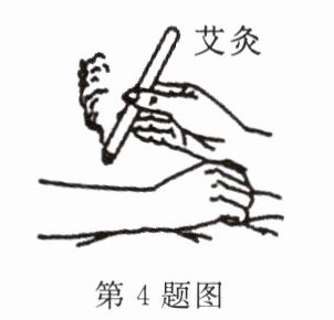 4. [传统文化]如图所示,“艾灸”是用点燃艾条产生的热刺激人体穴位,达到理疗效果的一种中医疗法。“艾灸”是通过