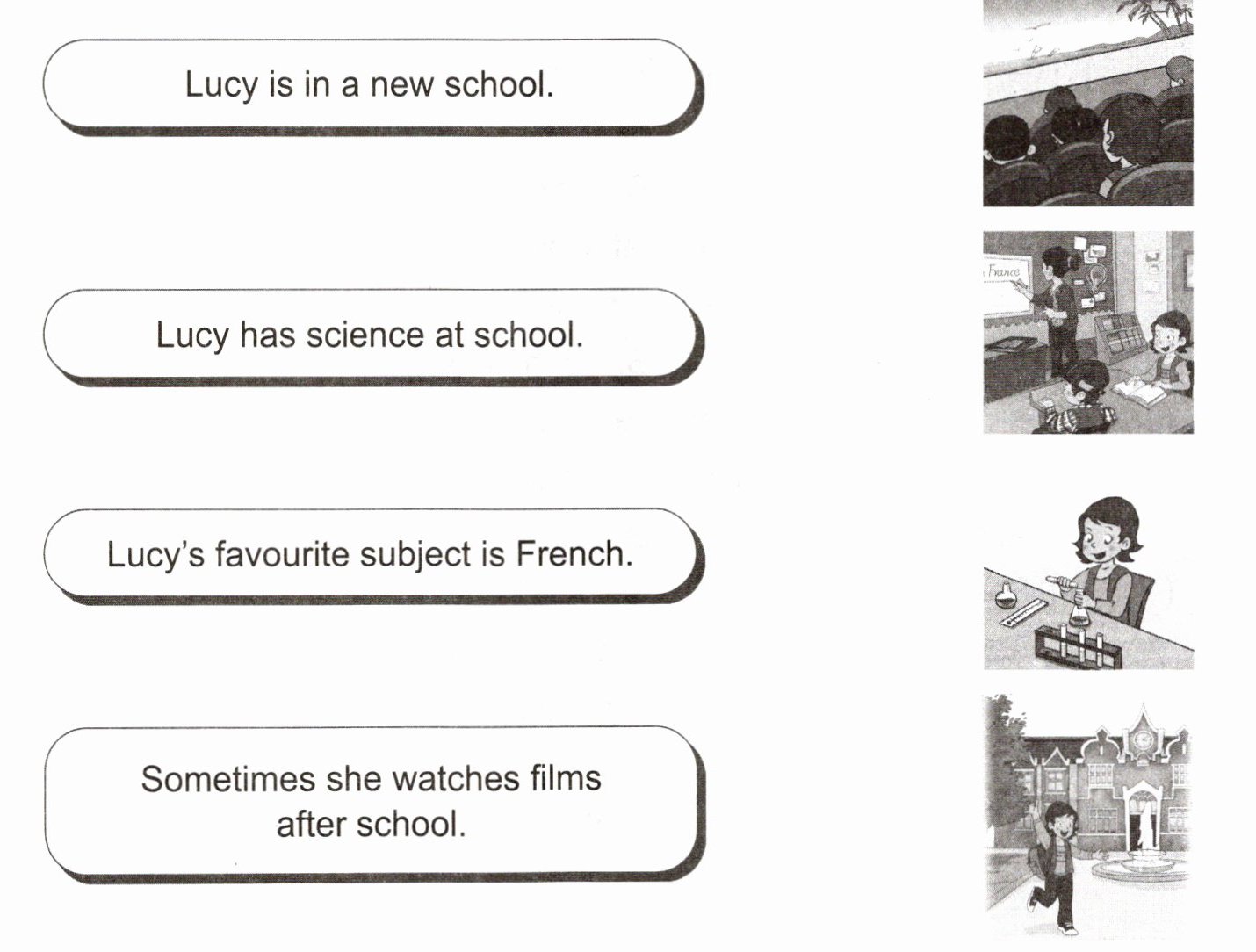Lucy is in a new school. —— 第四幅图