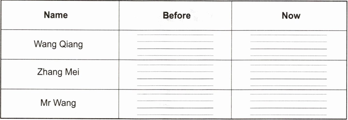 Today is Teachers' Day. Zhang Mei and Wang Qiang are back at school. Zhang Mei was short ten years ago. Now she is tall. Wang Qiang was thin then. Now he is a little(有点儿) fat. I was young then, but now I am old. I am very happy to see them.