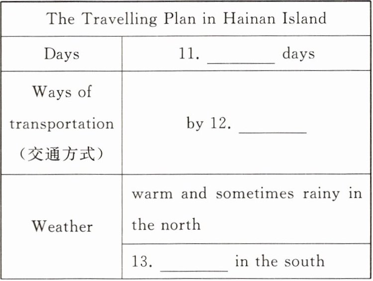 录音中有一篇短文,听录音两遍后,根据所听到的短文内容完成下面的表格(每空不多于三个词)。(录音播放前你有 30 秒钟的读题时间)