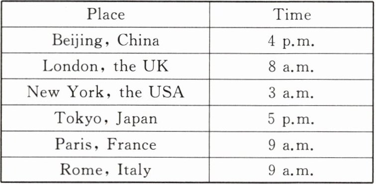 | New York,the USA | 3 a.m. |