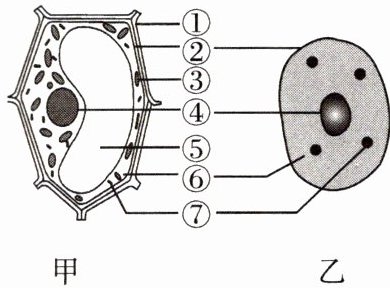 )A.与乙相比,甲特有的结构是①细胞壁、③叶绿体、⑤液泡