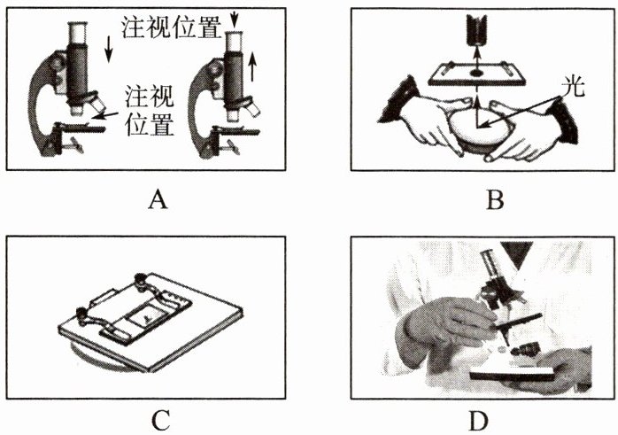 1.下面四幅图中,哪一幅能正确表示显微镜使用过程中的对光步骤?(