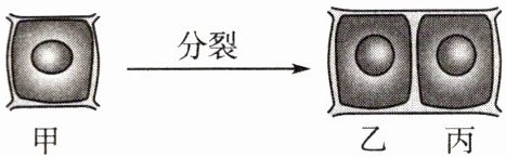 2. 细胞分裂是生物体生长、发育和繁殖的基础。甲细胞经分裂形成乙、丙两个新细胞(如下图所示)。下列关于该过程的叙述,正确的是(