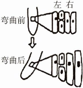 例2 下图为植物的根发生弯曲生长时的细胞形态图。由此可推测,造成根弯曲的原因最可能是(