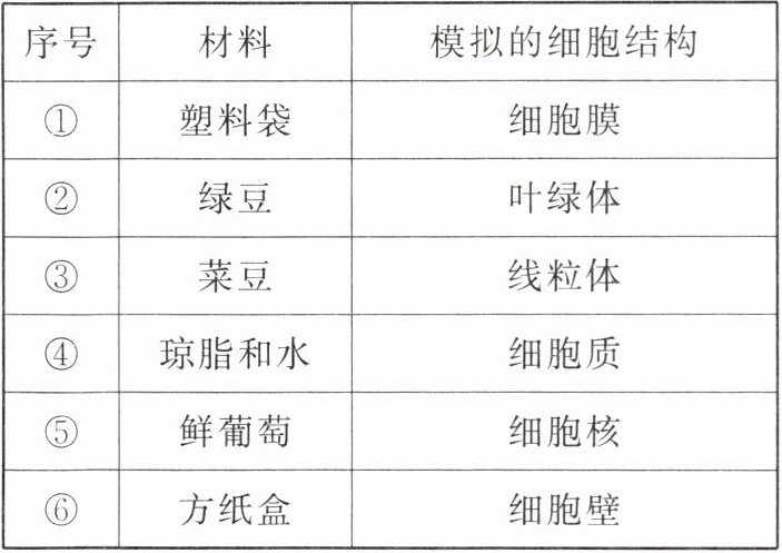 (5)制作细胞模型是学习细胞基本结构的一种方法,以下是制作动物细胞模型所用的材料: