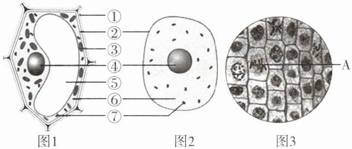13. 图1、图2分别是植物和动物细胞结构示意图,图3为显微镜下观察到的洋葱根尖细胞分裂图。请据图回答下列问题。
