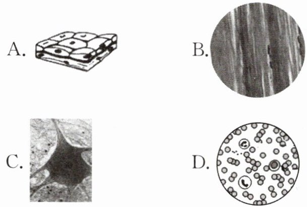 3. 受精卵通过细胞分裂、分化,形成各种组织和器官。下图表示人体的四种基本组织,其中能感受刺激、产生并传导神经冲动的是 (