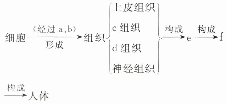 13. 人体是由一个受精卵经过一系列变化发育而成的,下图是人体的结构层次概念图,请据图回答下列问题。