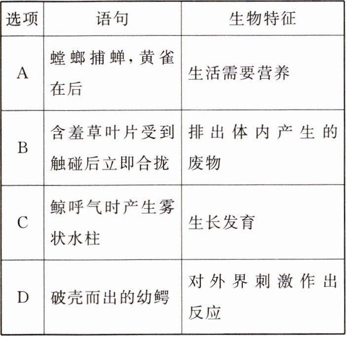 10. 下列“语句”描述的生命现象,与后面的生物特征对应正确的是(