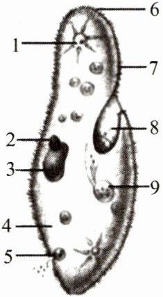 7. 草履虫的结构如下图所示。请填出各标号代表的名称及作用。