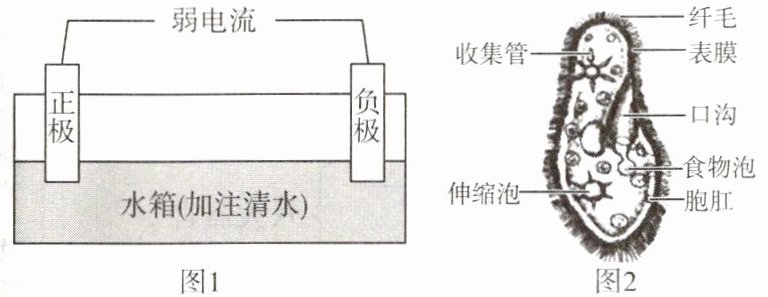 一侧。草履虫摆动几分钟后到达水箱另一侧。用吸管吸取无杂质的草履虫,注入培养液中培养备用。③草履虫可以通过图2中