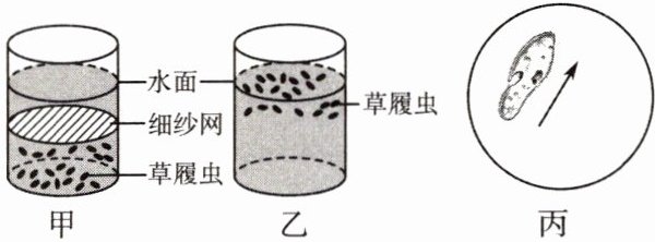 ③ 甲烧杯中放置一个细纱网,使草履虫无法靠近水面,乙烧杯不做处理,如下图所示。