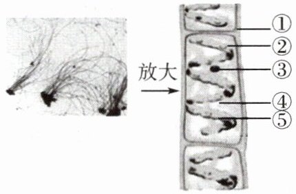 ,显微镜下可见该生物由圆柱状细胞连接而成,没有根、茎、叶等器官,但能进行光合作用,因为该生物具有[⑤