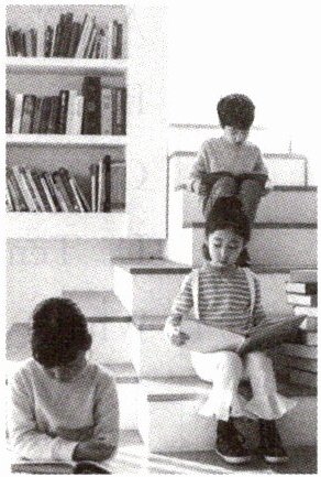 At about 4:00 p. m., some boys and girls come to our house. They read books on these chairs and sofas in our house. In our shared library, I meet many new friends.
