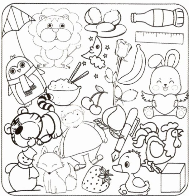 (二)试着读读方框内的单词,在下面图片中找到相应内容并涂上你喜欢的颜色。(提示:可以利用字典获知生词的意思)