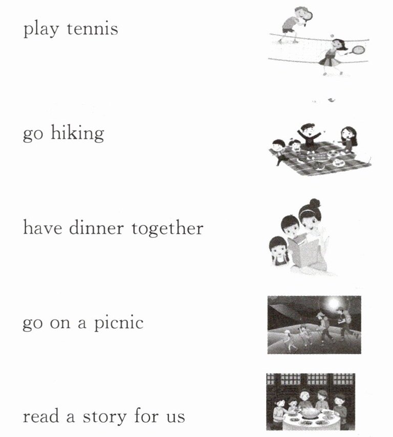 你喜欢和家人一起做哪些事?(可列举活动相关的英文词组) have dinner together, go on a picnic