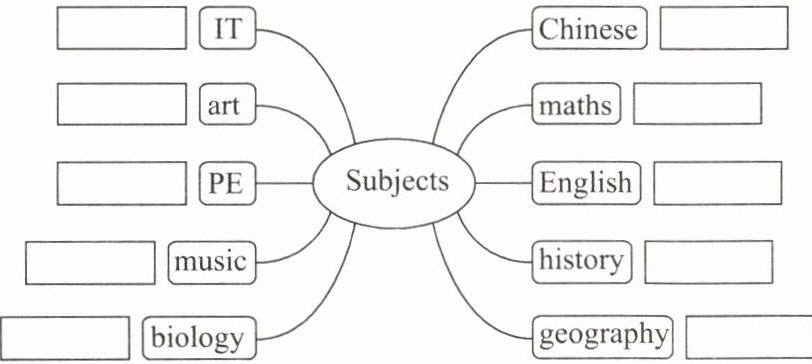 新课程的改革强调学科课程与综合素质教育课程相结合,促进学生的全面发展。请将各学科所能学到的东西写在下面导图中,可以查阅资料。