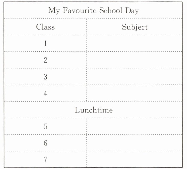 请同学们用英语写出你最喜欢的一天的课程表。