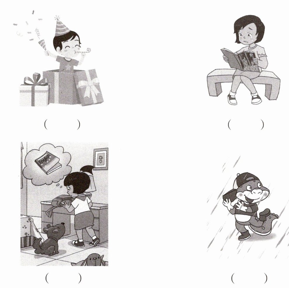 ) 2. A. He’s dancing in the rain. He’s excited.B. She’s skipping. She’s happy.