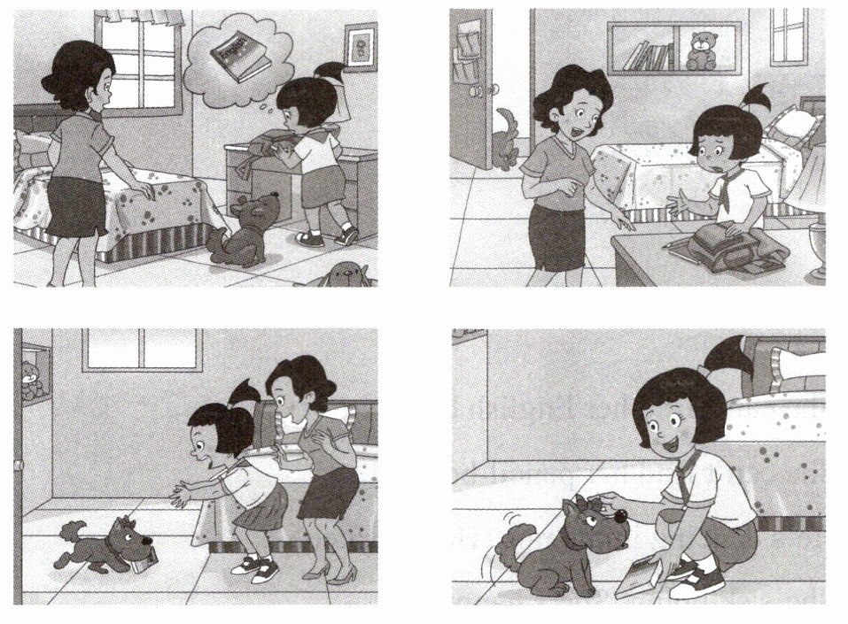 it on the desk yesterday.” Huanhuan comes in. She has a book in her mouth. She’s 5.excited