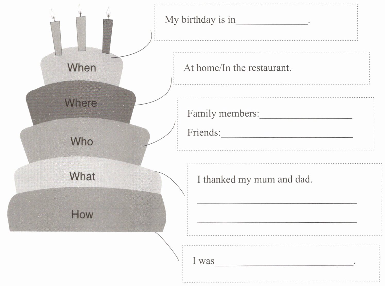 1. Make a mind map of your last birthday story.
