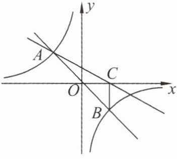7. 如图,在平面直角坐标系中,直线 $ y = mx $ 与双曲线 $ y = \frac{n}{x} $ 交于 $ A(-2, a) $,$ B $ 两点,且 $ BC \perp x $ 轴,垂足为 $ C $,$ \triangle AOC $ 的面积是 $ 2 $.