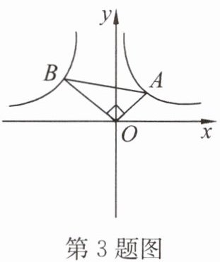 3. 如图,$ Rt \triangle AOB $ 中,$ \angle AOB = 90^{\circ} $,顶点 $ A $,$ B $ 分别在反比例函数 $ y = \frac{1}{x} (x > 0) $ 与反比例函数 $ y = \frac{-5}{x} (x < 0) $ 的图象上,则 $ \frac{BO}{AO} $ 的值为