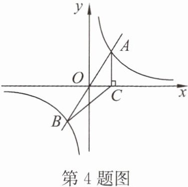 4. 如图,反比例函数与正比例函数的图象交于 $ A $,$ B $ 两点,过点 $ A $ 作 $ AC \perp x $ 轴于点 $ C $. 若 $ \triangle ABC $ 的面积是 $ 8 $,则这个反比例函数的表达式是