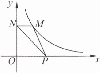 5. 如图,点 $ M $ 是反比例函数 $ y = \frac{2}{x} (x > 0) $ 图象上任意一点,$ MN \perp y $ 轴于点 $ N $,点 $ P $ 是 $ x $ 轴上的动点,那么 $ \triangle MNP $ 的面积为