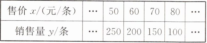 9. 已知某网店专售一款休闲裤,其成本价为40元/条. 据市场调查发现,每月的销售量y与售价x的关系如下表: