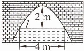 4. 如图,有一座抛物线形拱桥.当水面的宽度为 $ 4 m $ 时,拱顶距离水面 $ 2 m $.当水面下降 $ 1 m $ 时,水面的宽度增加 $\underline{