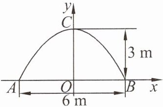 6. 某条河上有一座抛物线形的石拱桥,其示意图如图所示.已知水面宽 $ 6 m $ 时,桥拱顶部距水面 $ 3 m $,因暴雨水位上升 $ 1 m $.