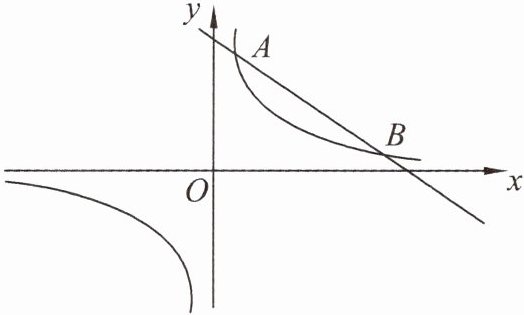 8. 如图,反比例函数 $ y = \frac{m}{x} $($ m \neq 0 $)的图象与一次函数 $ y = kx + b $($ k \neq 0 $)的图象交于 $ A $,$ B $ 两点,点 $ A $ 的坐标为 $ (2, 6) $,点 $ B $ 的坐标为 $ (n, 1) $。