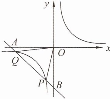 (2)该一次函数的图象分别与 $ x $ 轴、$ y $ 轴交于 $ A $,$ B $ 两点,与该反比例函数图象的另一个交点为 $ P $ 点,连接 $ OP $,$ OQ $,求 $ \triangle OPQ $ 的面积。
