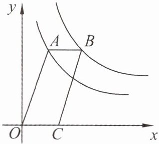 14. 如图,在平面直角坐标系中,点$O$为坐标原点,平行四边形$OABC的顶点A在双曲线y = \frac{1}{x}$上,顶点$B在双曲线y = \frac{5}{x}$上,点$C在x$轴的正半轴上,那么平行四边形$OABC$的面积是