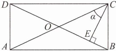 8. 如图,在矩形 $ ABCD $ 中, $ CE \perp BD $ 于点 $ E $, $ BE = 2 $, $ DE = 8 $。设 $ \angle ACE = \alpha $,求 $ \tan \alpha $ 的值。