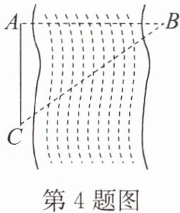 4. 如图,为了测量河两岸相对两根电线杆 $ A $, $ B $ 间的距离,在距 $ A $ $ 15 m $ 的 $ C $ 处( $ AC \perp AB $)测得 $ \angle ACB = 60° $,则 $ A $, $ B $ 间的距离为