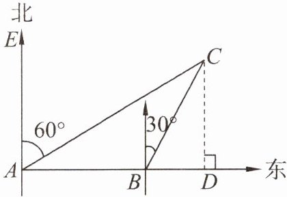 $\therefore\frac{DE}{AE}=\frac{\sqrt{3}}{3}$,即$\frac{30}{AE}=\frac{\sqrt{3}}{3}$,