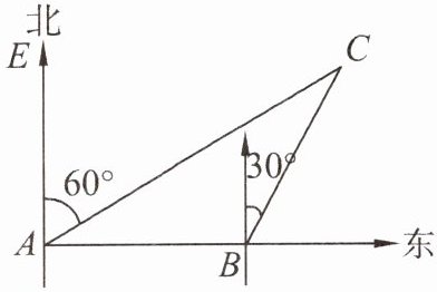例2 如图,某船以每小时$36$海里的速度向正东方向航行,在$A点测得某岛C在北偏东60^{\circ}$方向上,航行半小时后到达$B$点,测得该岛在北偏东$30^{\circ}$方向上. 该岛周围$16$海里内有暗礁.