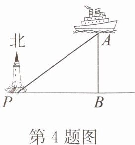 4. 如图,一艘海轮位于灯塔$P北偏东55^{\circ}$的方向,距离灯塔$2海里的点A$处. 如果这艘海轮沿正南方向航行到灯塔$P$的正东方向,那么这艘海轮航行的距离$AB$为(